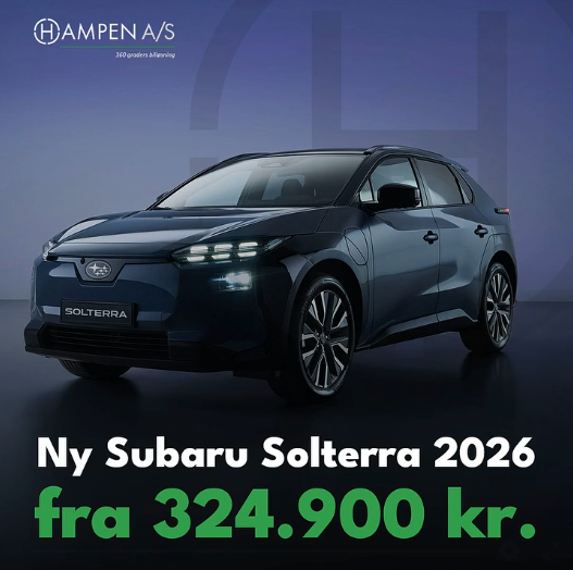 I forbindelse med min ansættelse hos Hampen A/S lavede jeg bl.a. Meta Ads annonce for deres nye Subaru Solterra 2026. Annoncen var en billedekarrusel med nedenstående billeder i samme rækkefølge.